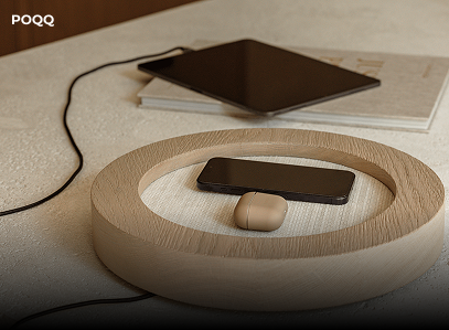 BLE companion app for a Belgian luxury wireless charger with Qi 2.2 and premium walnut-wood design